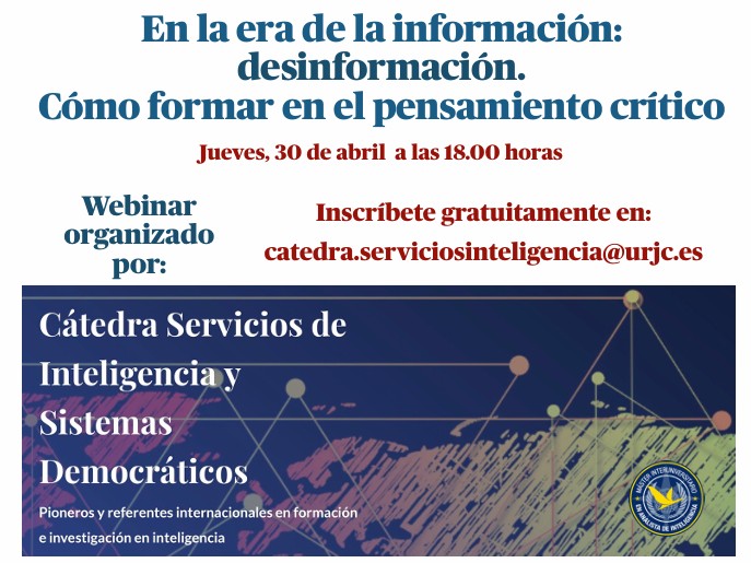 El día 30 de abril de 2024 tendrá lugar el webinar «En la era de la información: desinformación. Cómo formar en el pensamiento crítico». Será a las 18.00 y de forma telemática.